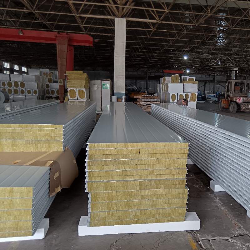 The rock wool sandwich panel with rock wool core can meet the most stringent fire protection requirements while also meeting the required thermal insulation performance and maintaining good load-bearing capacity. Rock wool sandwich panels are made of natural minerals such as basalt as the main raw materials, which are melted into fibers at high temperatures and solidified by adding an appropriate amount of adhesive. Rock wool sandwich panel products are suitable for thermal insulation and sound insulation of industrial equipment, buildings, and ships.